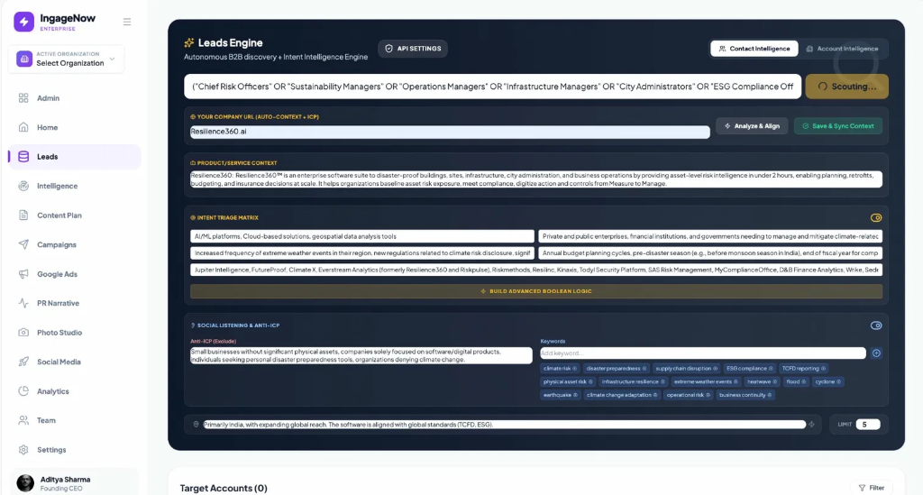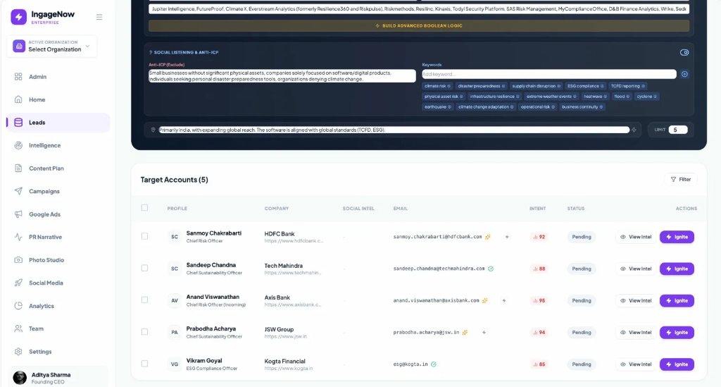 - • Click "Ignite" on high-intent leads