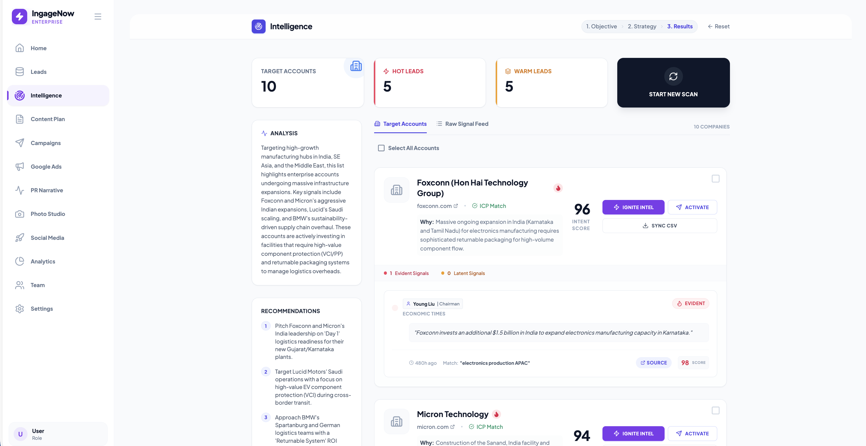 Run a live simulation to see how IngageNow's agents build your pipeline, manage your social, and garner press.